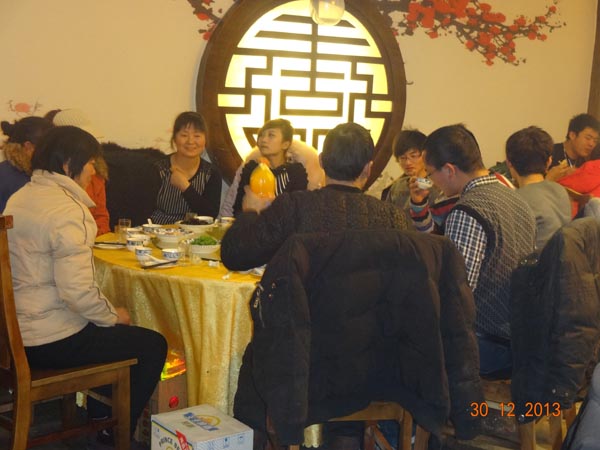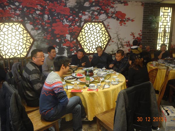 2013-12-30中午,公司全體人員進(jìn)行年終尾牙聚餐。首先周總代表全體股東發(fā)表發(fā)言,吃飯期間穿插摸獎(jiǎng),領(lǐng)導(dǎo)敬酒將氣氛推向高潮。總之這次活動(dòng)取得圓滿成功,大家都吃得很開心,玩得也很盡興。通過本次公司聚餐,同事之間有了一個(gè)更好的交流機(jī)會(huì),不僅加深了同事之間的感情,還增強(qiáng)了整公司的凝聚力。