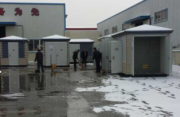 2015年的第一場(chǎng)雪,來(lái)的真是突然。最近由于公司訂單多,工期緊,所以生產(chǎn)任務(wù)繁忙。為了及時(shí)保質(zhì)保量的出貨,大家齊心協(xié)力,克服嚴(yán)寒,加班搶點(diǎn)的趕工。就連今年的第一場(chǎng)雪都沒時(shí)間好好欣賞就投入到生產(chǎn)搶工中,在廠領(lǐng)導(dǎo)和工人的不懈努力中,終于完成了花果山西游大道箱變、少年宮10KVA箱變和薔薇島旅游開發(fā)箱變按時(shí)完工。